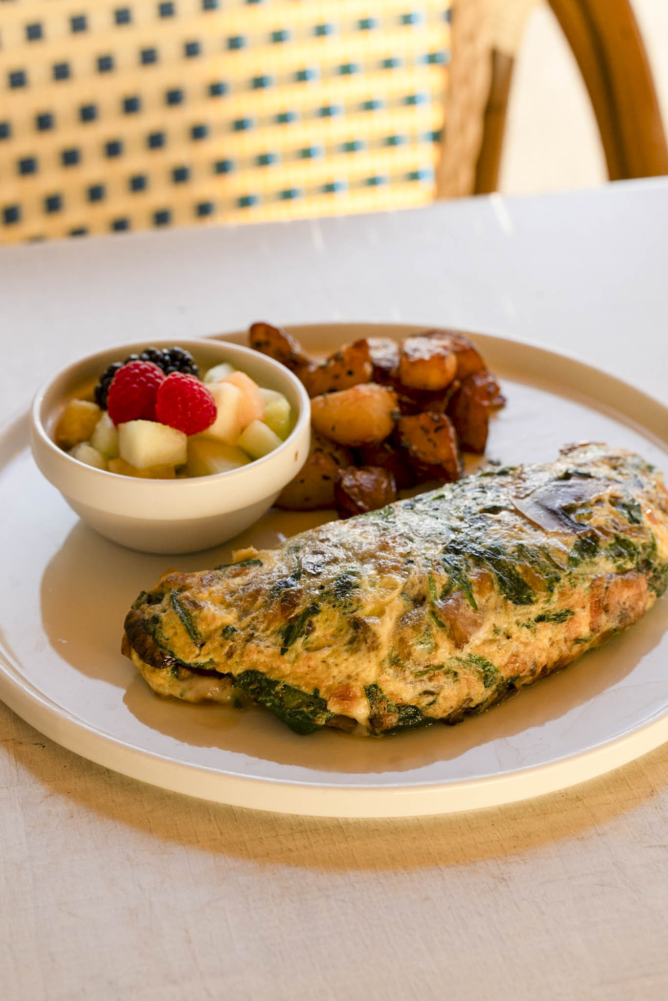 Spinach Flour Tortilla, Sausage, Tomatoes, Roasted Potatoes, Fontina Cheese Avocado