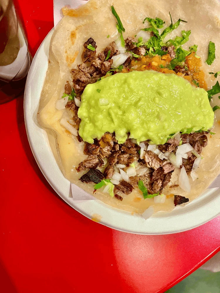 Choose corn or flour tortilla. All items include onion, cilantro, salsa and guacamole.