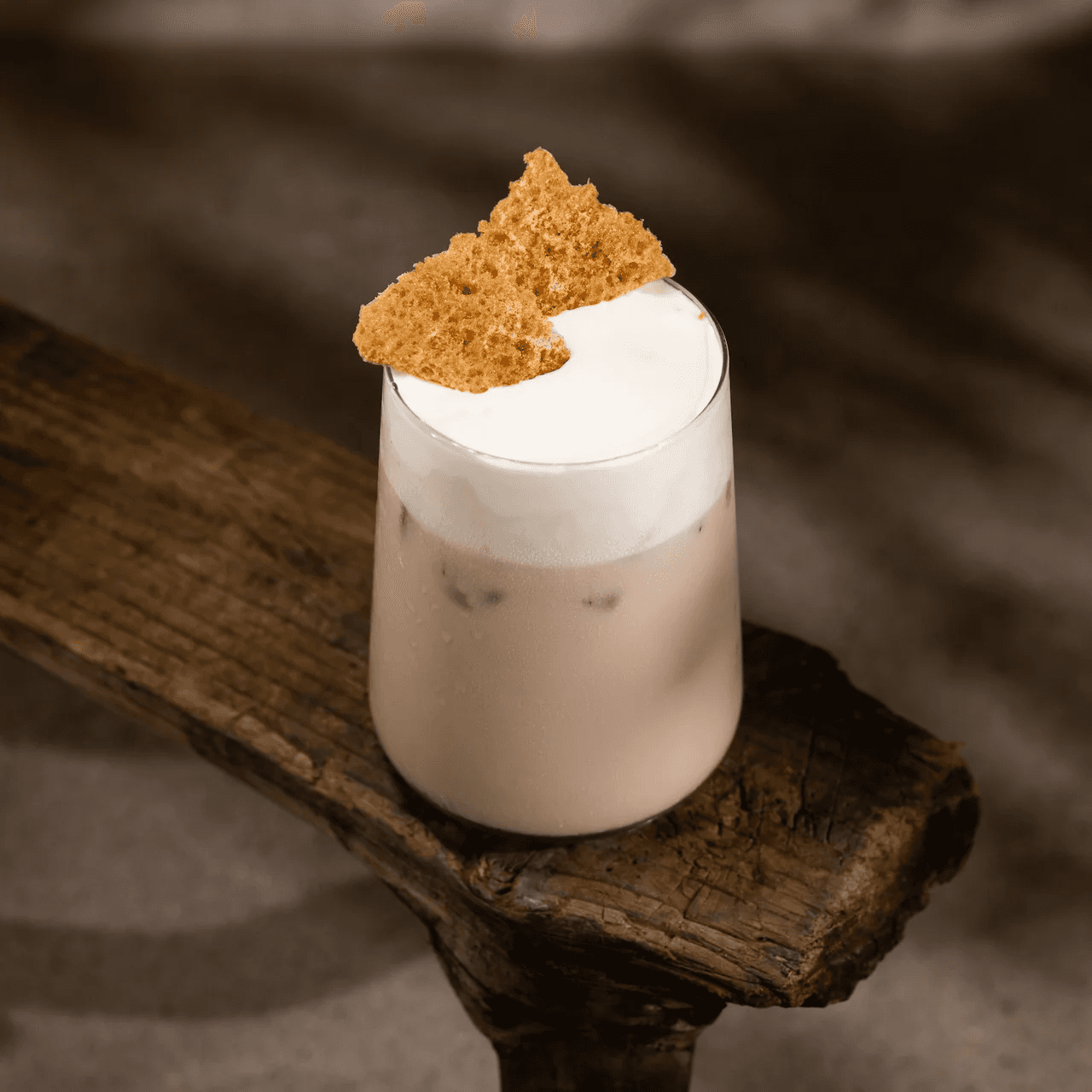 Our selected dark roast Koan-Im oolong milk tea topped with the rich and lightly salted Himalayan house cloud top and home-made Dalgona to give you that perfect toasty finish when you sip. Served as crafted.