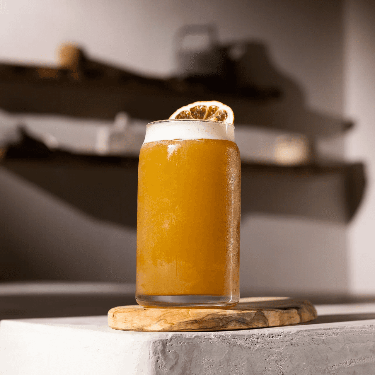 This drink blends the traditional Filipino citrus fruit, calamansi, with sugarcane, freshly shipped from Vietnam. We balance this flavor with our passion fruit puree, and blend with our freshly brewed light roasted oolong tea sourced from Taiwan.