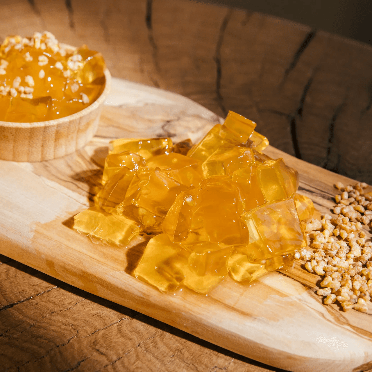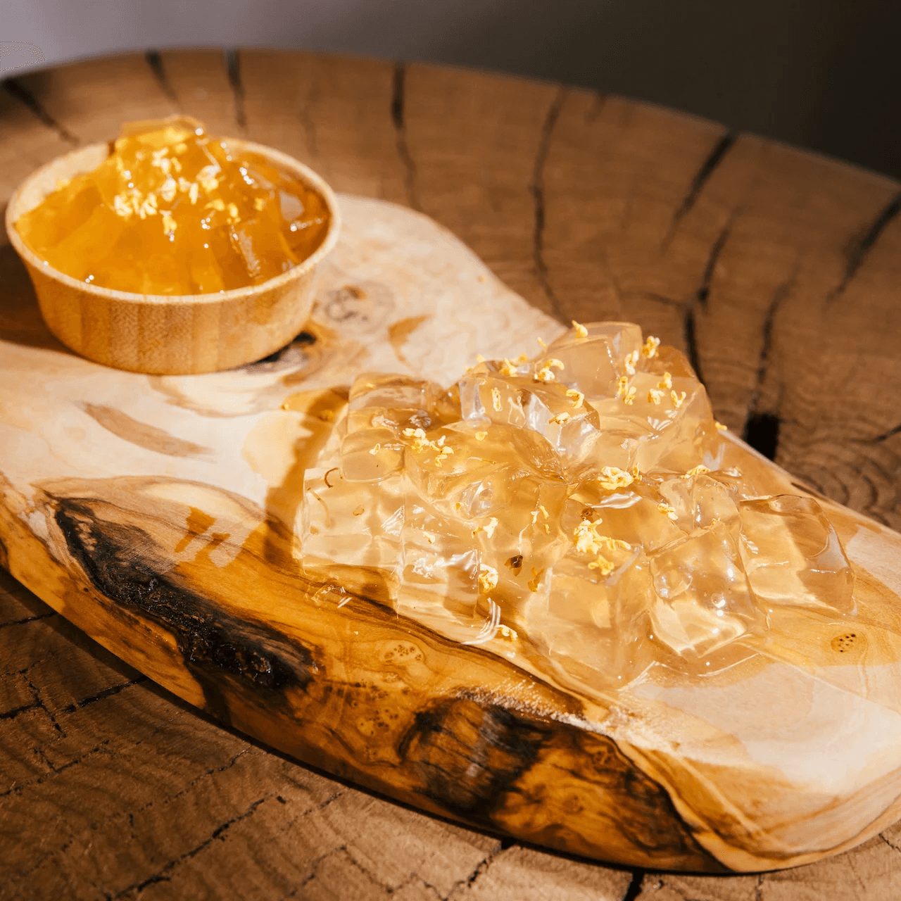 Gelatinous texture jelly handcrafted in-house with our osmanthus puree. Note: not sold separately, only to be enjoyed in a drink.