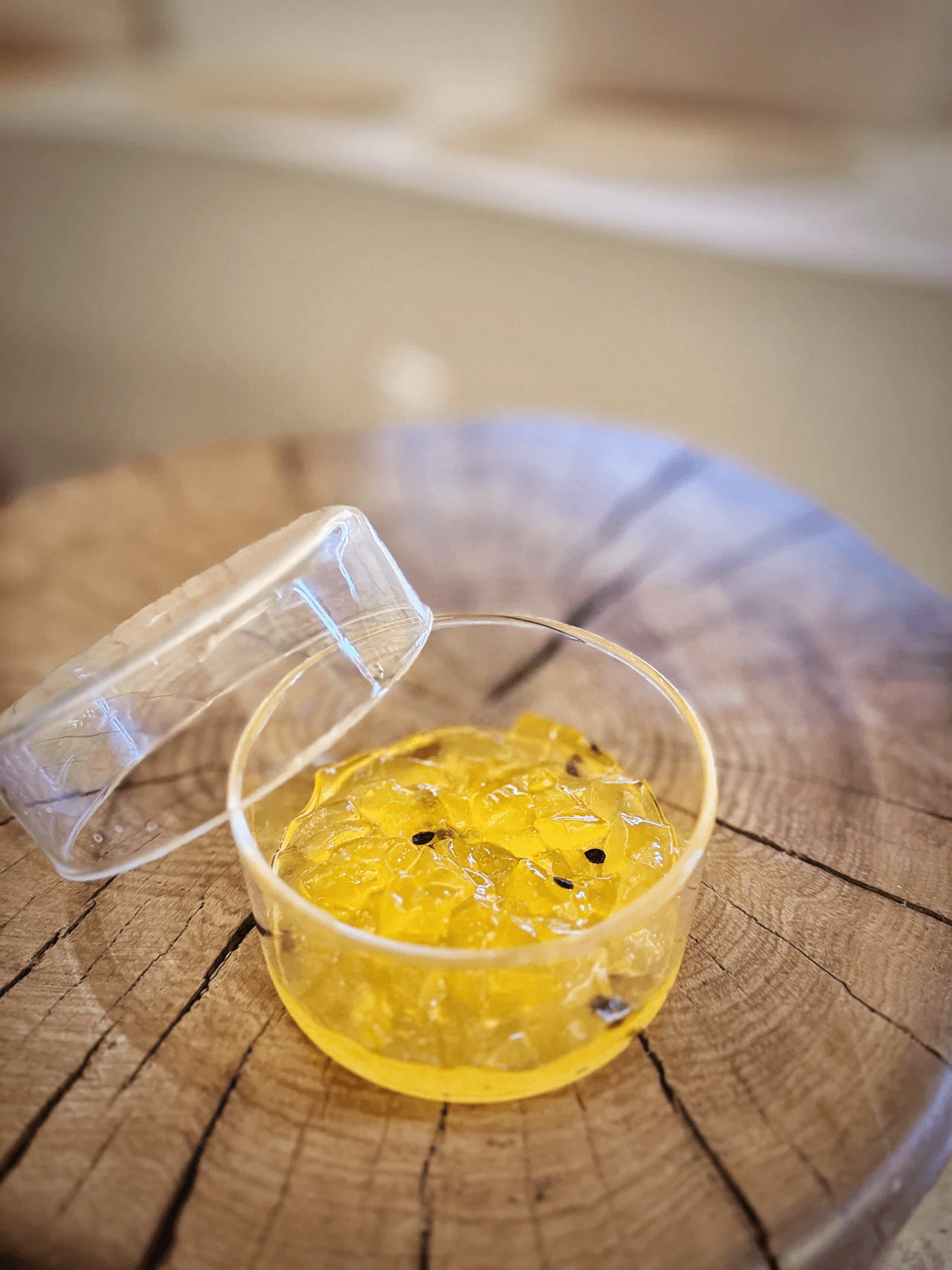 Passion fruit infused variety of our handcrafted in-house jelly. Note: not sold separately, only to be enjoyed in a drink.