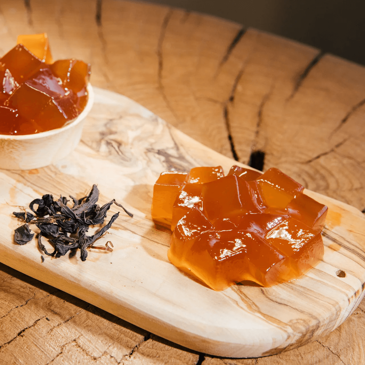Black Tea Tapiochi (Tapioca Mochi), Brown Sugar Tapiochi (Tapioca Mochi), Osmanthus Jelly